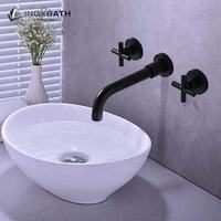 حنفية حديثة سوداء مثبتة على الحائط من الفولاذ المقاوم للصدأ ، غسيل يدوي للحمام مع ميزات توفير المياه الباردة والساخنة