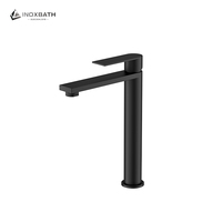 ก๊อกน้ำอ่างล้างหน้าสีดำดีไซน์สุดสร้างสรรค์ก๊อกน้ำร้อนเย็น SUS304สำหรับห้องน้ำก๊อกน้ำตกพร้อมตัวยึดแบบรูเดี่ยวแกนวาล์วเซรามิก