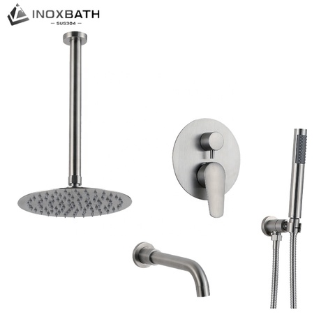 Set di soffioni a mano di forma rotonda in acciaio inossidabile miscelatore per doccia a pioggia con colonna per tubo flessibile