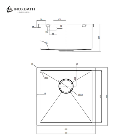 עבודת יד 304 נירוסטה מרובע מתחת לנרהר כיור מטבח