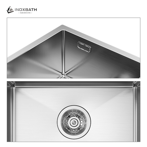 מטבח יוקרתי בעבודת יד כיור מטבח כיור חם בהיי-טק קערת יחיד 304 נירוסטה ברז משטח מוברש משטח מוברש 304
