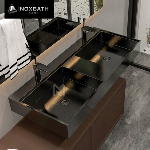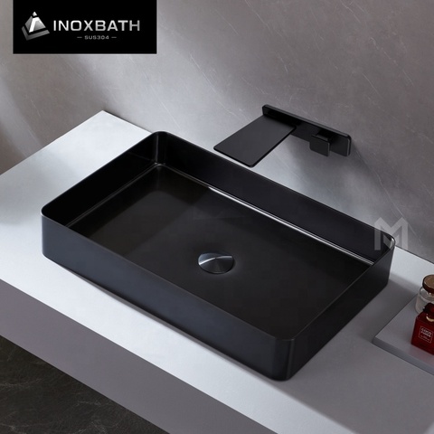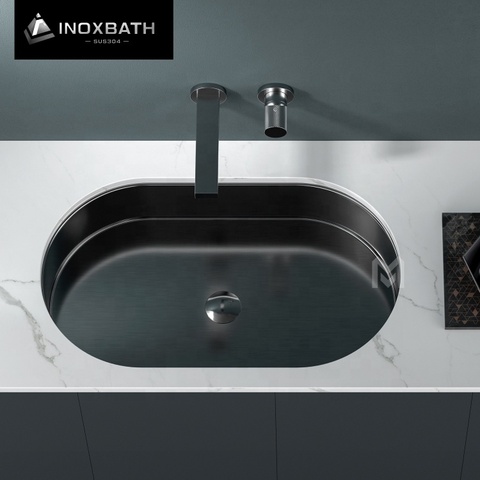 Au-dessus Du Comptoir Main Moderne Sanitaire En Acier Inoxydable Salle De Bains Lavabo Construction Salle De Bains Noir Navire Lavabo