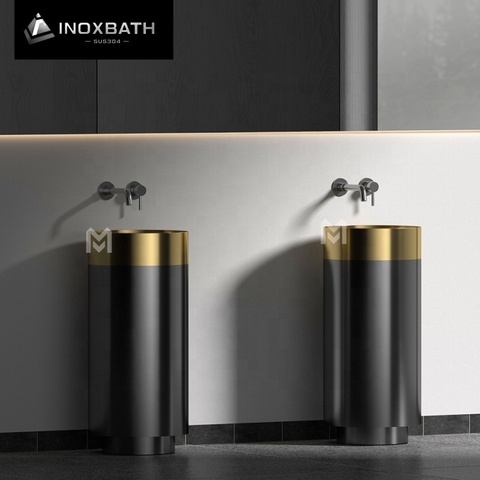 Lavabo rond de luxe en acier inoxydable, sur pied Public PVD or rose, lavabo avec piédestal, éviers de salle de bain d'hôtel
