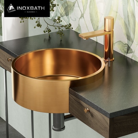 Lavabo rond en acier inoxydable 304 doré au-dessus du comptoir topmount maison hôtel restaurant salle de bain lavabos