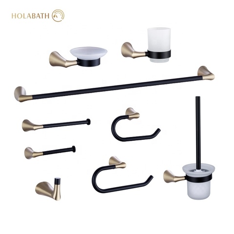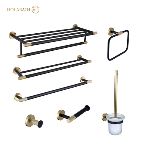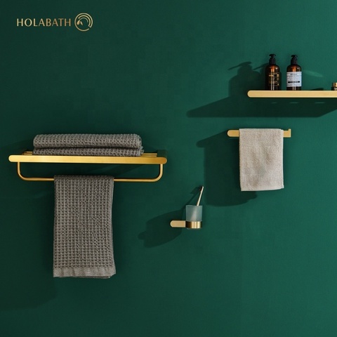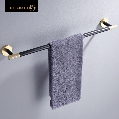 Zwart Goud Badkamer Handdoekenrek Muur Opknoping Luxe Geborsteld Roestvrij Staal Enkele Handdoekstang